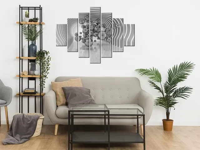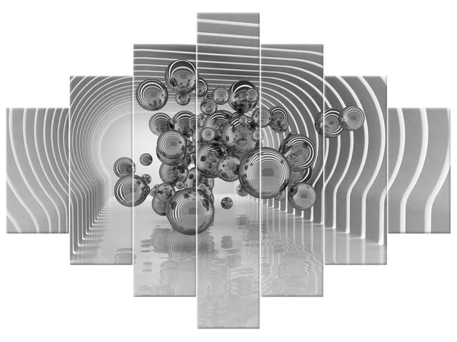 2813A_5D 3D obraz na plátne Gule vo futuristickej miestnosti |
