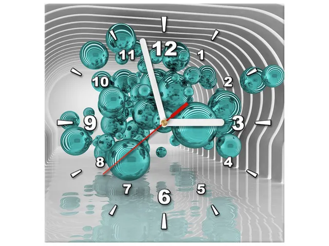 Úvod » Obrazy » Obrazy s hodinami » 3D obraz s hodinami Gule vo futuristickej 3D miestnosti v tyrkyse