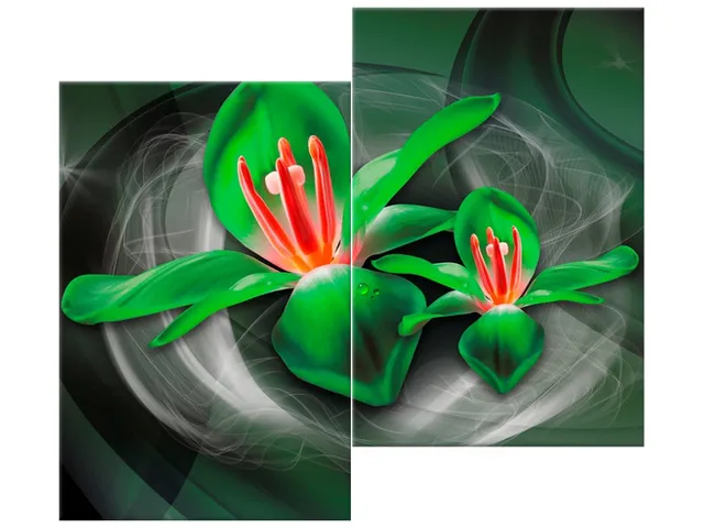 3577A_3D Abstraktný obraz Zelené kozmické kvety - Jakub Banas |
