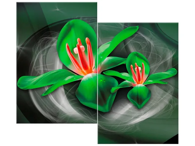 3577A_3D Abstraktný obraz Zelené kozmické kvety - Jakub Banas |