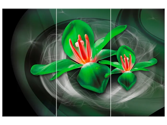 3577A_3M Abstraktný obraz Zelené kozmické kvety - Jakub Banas |