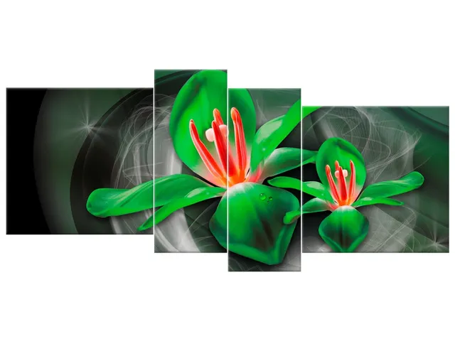 3577A_5D Abstraktný obraz Zelené kozmické kvety - Jakub Banas |