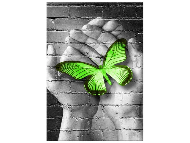 2362A_1D Abstraktný obraz Zelený motýľ v dlaniach |