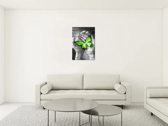 2362A_1AI Abstraktný obraz Zelený motýľ v dlaniach |