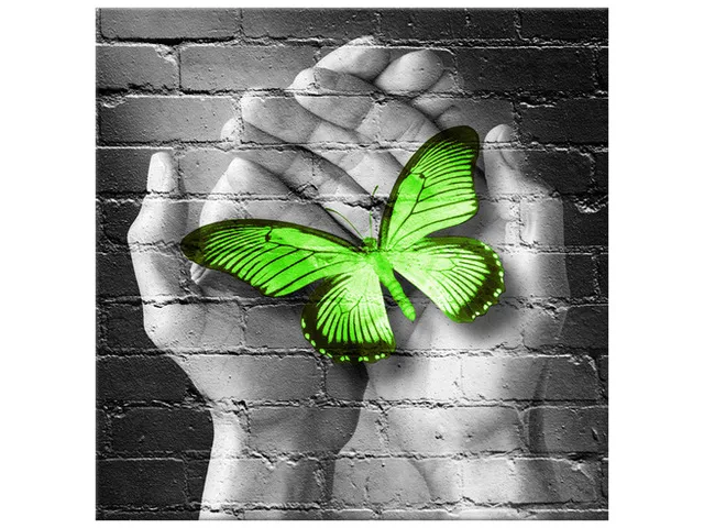 2362A_1G Abstraktný obraz Zelený motýľ v dlaniach |