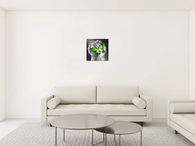 2362A_1F Abstraktný obraz Zelený motýľ v dlaniach |