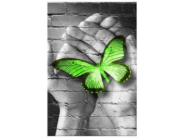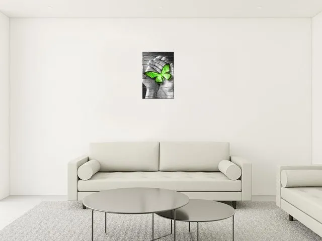 Barion Pixel Abstraktný obraz Zelený motýľ v dlaniach