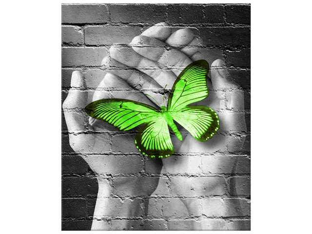 2362A_1T Abstraktný obraz Zelený motýľ v dlaniach |