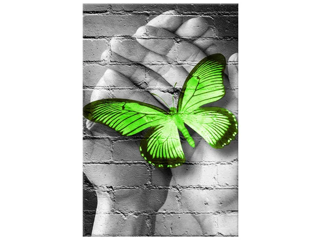 Barion Pixel Abstraktný obraz Zelený motýľ v dlaniach