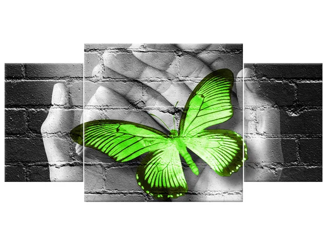 2362A_3K Abstraktný obraz Zelený motýľ v dlaniach |
