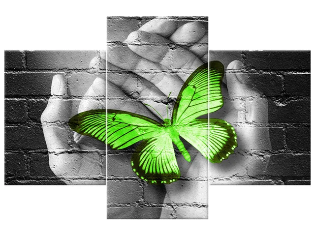 2362A_3K Abstraktný obraz Zelený motýľ v dlaniach |