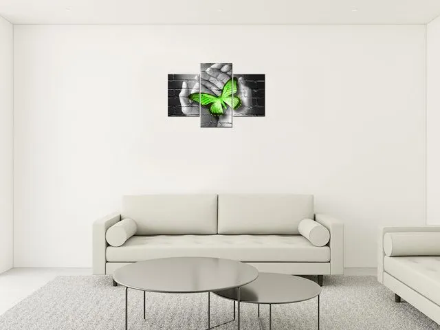 2362A_3H Abstraktný obraz Zelený motýľ v dlaniach |