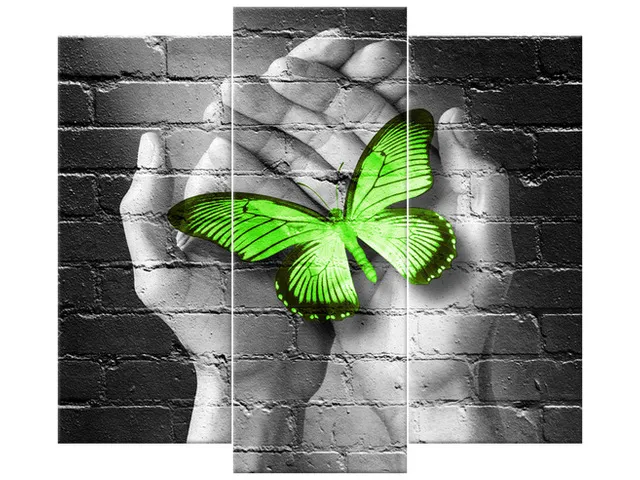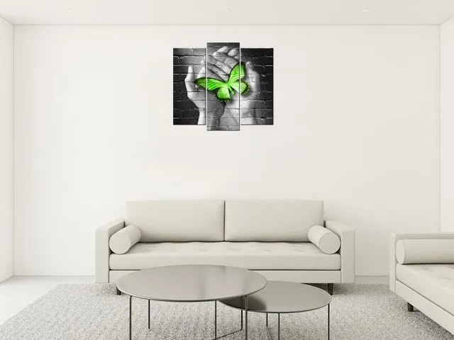2362A_3K Abstraktný obraz Zelený motýľ v dlaniach |