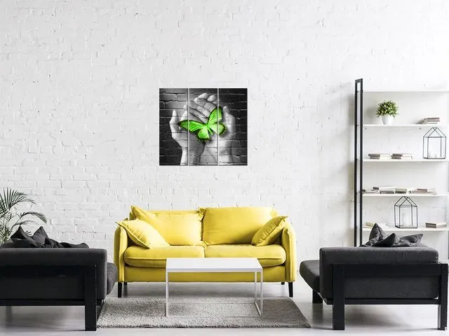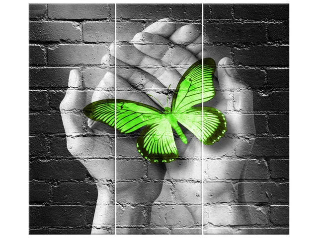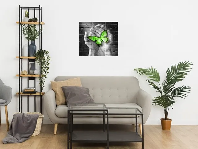 2362A_3K Abstraktný obraz Zelený motýľ v dlaniach |