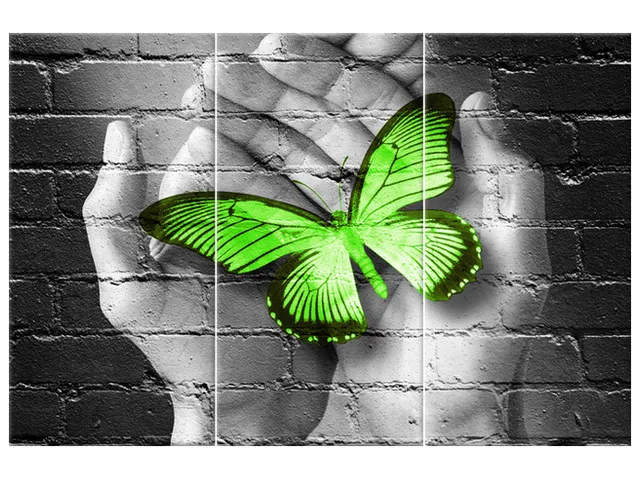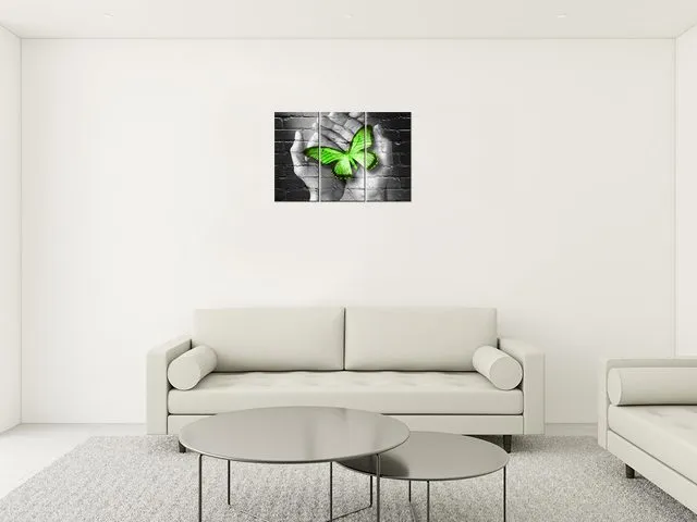 Barion Pixel Abstraktný obraz Zelený motýľ v dlaniach