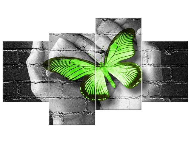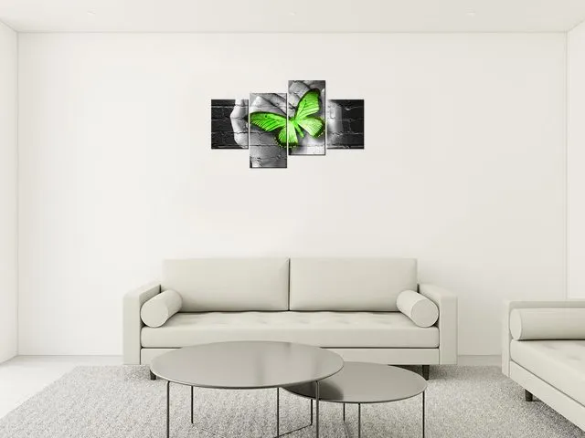 2362A_4Q Abstraktný obraz Zelený motýľ v dlaniach |