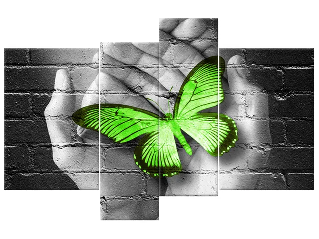 Barion Pixel Abstraktný obraz Zelený motýľ v dlaniach