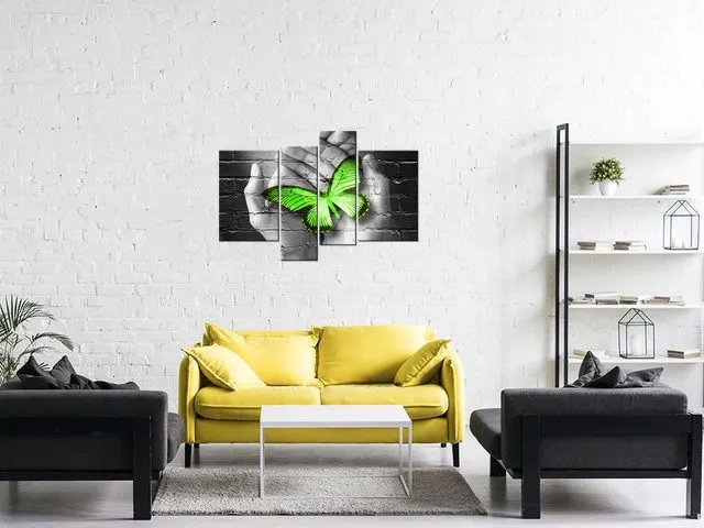Úvod » Obrazy » Obrazy na plátne » Abstrakt » Abstraktný obraz Zelený motýľ v dlaniach