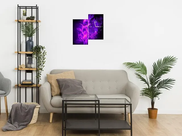 Úvod » Obrazy » Obrazy s hodinami » Abstraktný obraz s hodinami Fialová krása