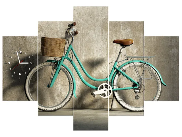 Úvod » Obrazy » Obrazy s hodinami » Analógové hodiny na plátne Retro bicykel