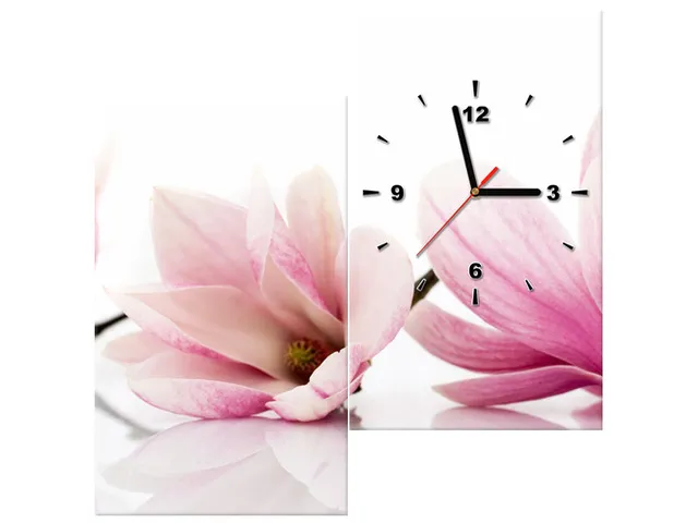 Úvod » Obrazy » Obrazy s hodinami » Dizajnové hodiny na plátne Ružové magnólie