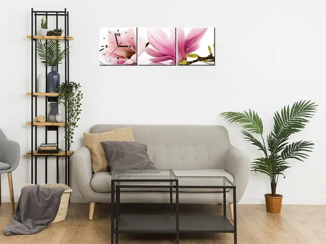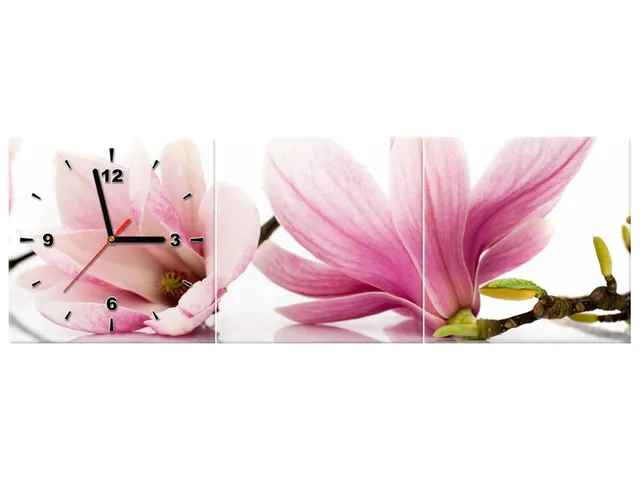 Úvod » Obrazy » Obrazy s hodinami » Dizajnové hodiny na plátne Ružové magnólie