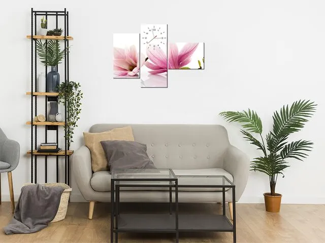 Úvod » Obrazy » Obrazy s hodinami » Dizajnové hodiny na plátne Ružové magnólie