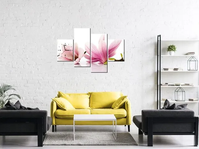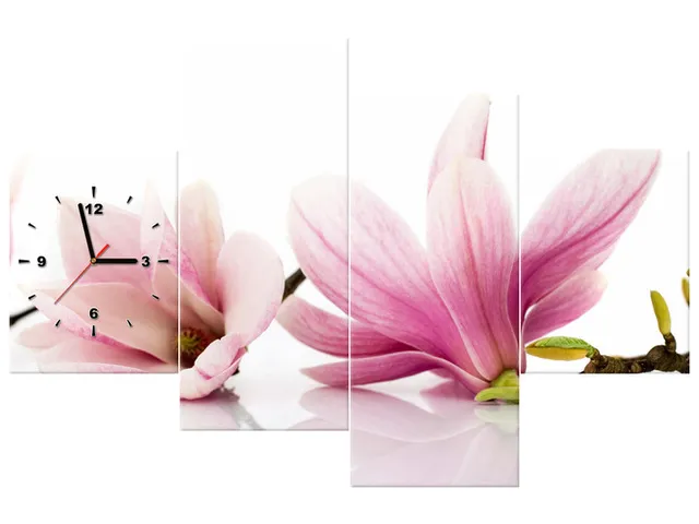 Úvod » Obrazy » Obrazy s hodinami » Dizajnové hodiny na plátne Ružové magnólie