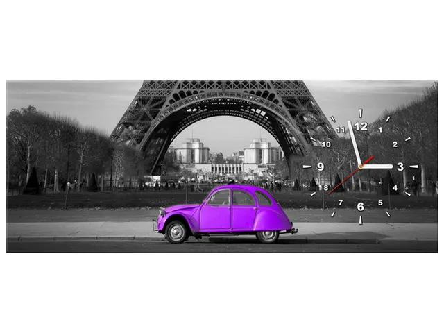 Úvod » Obrazy » Obrazy s hodinami » Dizajnové nástenné hodiny Auto v Paríži
