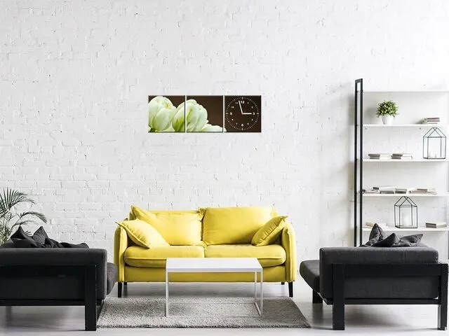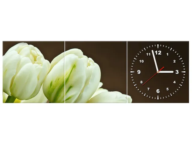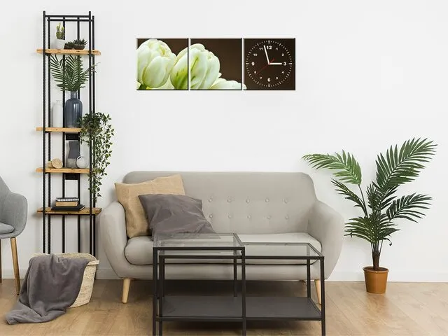 Úvod » Obrazy » Obrazy s hodinami » Dizajnové nástenné hodiny Biele tulipány