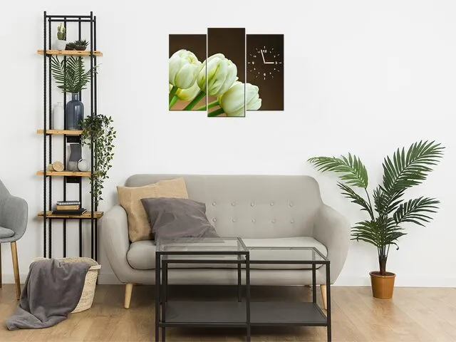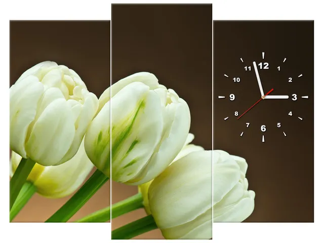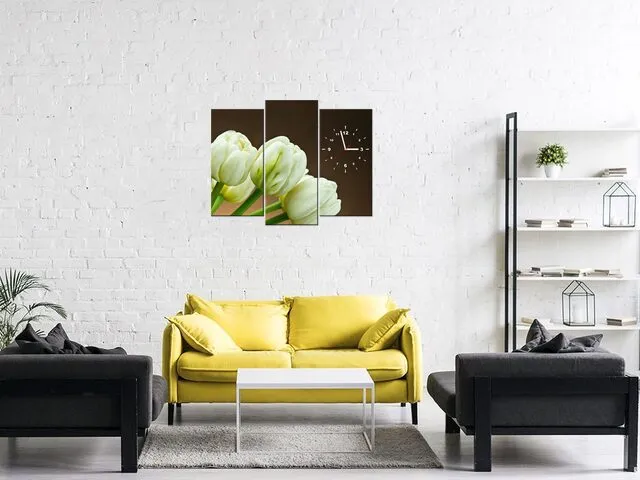 Úvod » Obrazy » Obrazy s hodinami » Dizajnové nástenné hodiny Biele tulipány