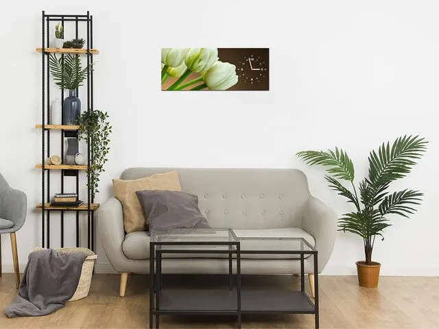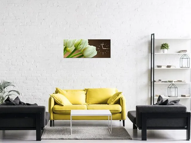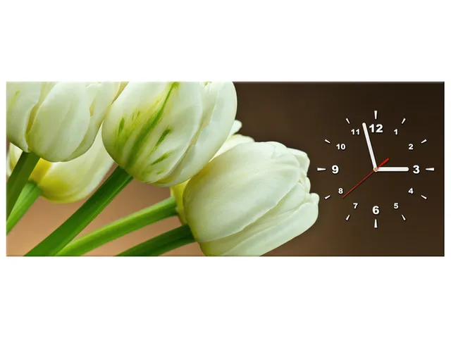 Úvod » Obrazy » Obrazy s hodinami » Dizajnové nástenné hodiny Biele tulipány