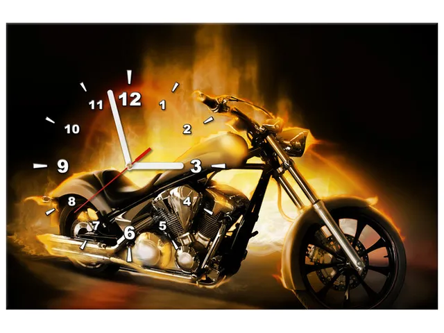 Úvod » Obrazy » Obrazy s hodinami » Dizajnové nástenné hodiny Horiaca motorka