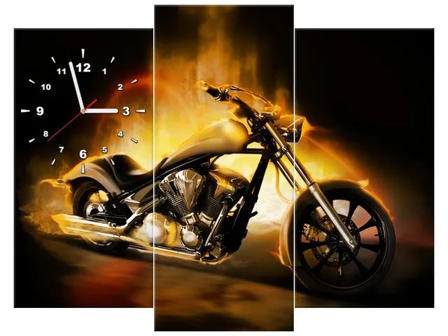 Úvod » Obrazy » Obrazy s hodinami » Dizajnové nástenné hodiny Horiaca motorka