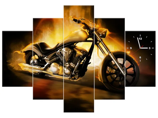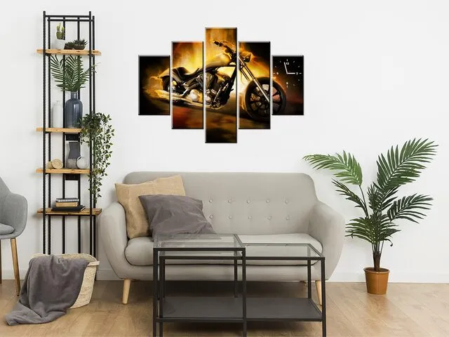 Úvod » Obrazy » Obrazy s hodinami » Dizajnové nástenné hodiny Horiaca motorka