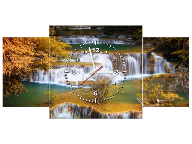 Úvod » Obrazy » Obrazy s hodinami » Dizajnové nástenné hodiny Vodopád Huay Mae Khamin