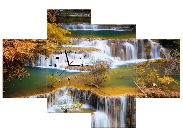 Úvod » Obrazy » Obrazy s hodinami » Dizajnové nástenné hodiny Vodopád Huay Mae Khamin