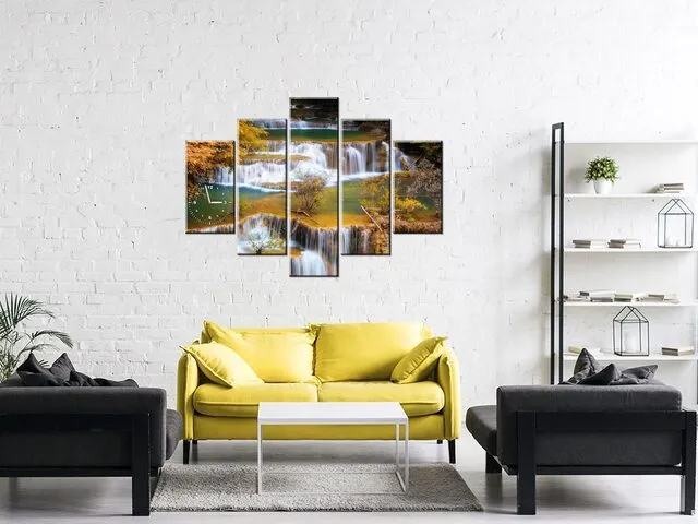 Úvod » Obrazy » Obrazy s hodinami » Dizajnové nástenné hodiny Vodopád Huay Mae Khamin