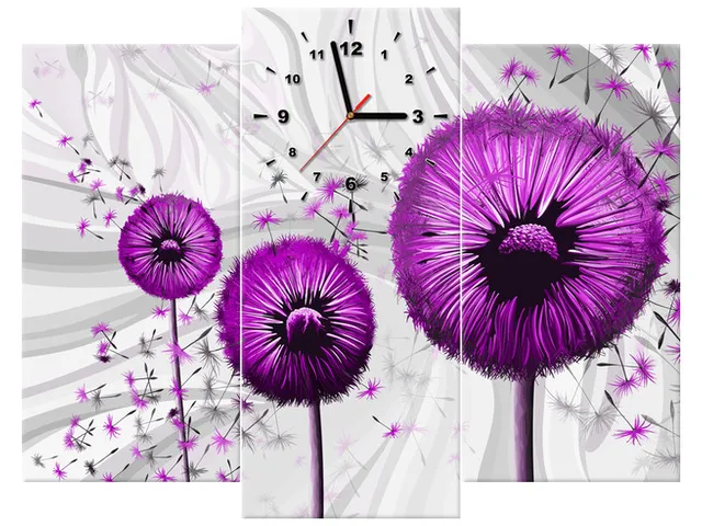 Úvod » Obrazy » Obrazy s hodinami » Fialové púpavy 3