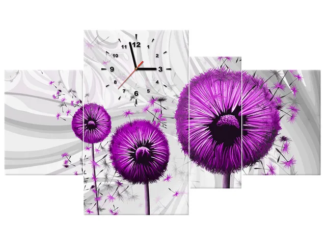 Úvod » Obrazy » Obrazy s hodinami » Fialové púpavy 3