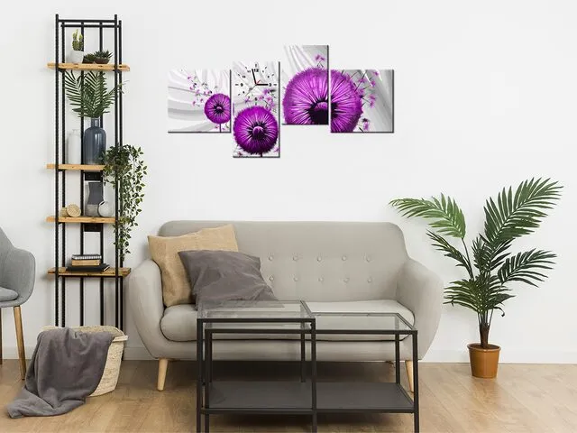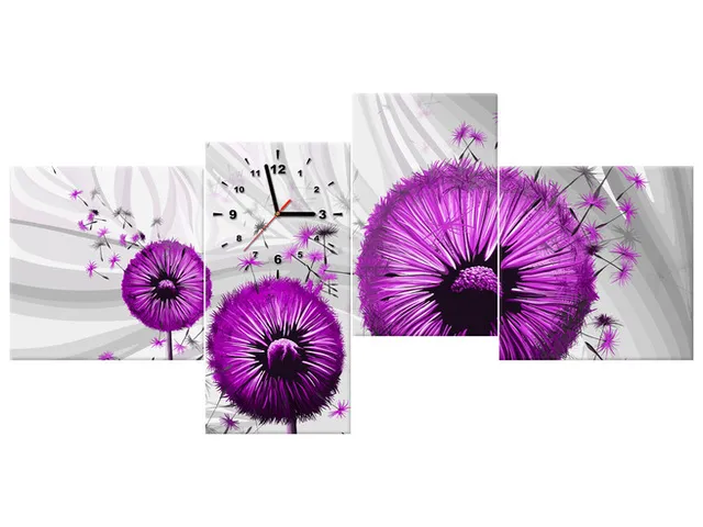 Úvod » Obrazy » Obrazy s hodinami » Fialové púpavy 3