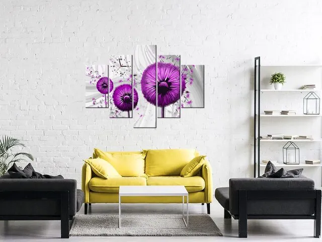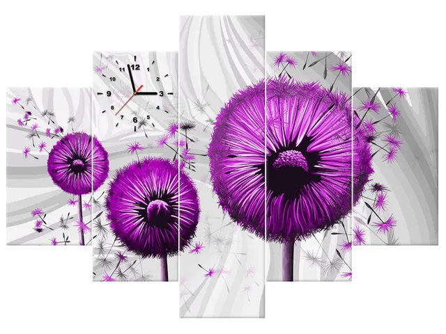 Úvod » Obrazy » Obrazy s hodinami » Fialové púpavy 3