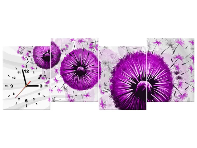 Úvod » Obrazy » Obrazy s hodinami » Fialové púpavy 4 - Obraz s hodinami