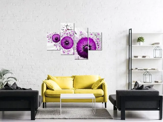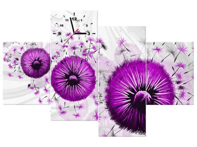 Úvod » Obrazy » Obrazy s hodinami » Fialové púpavy 4 - Obraz s hodinami