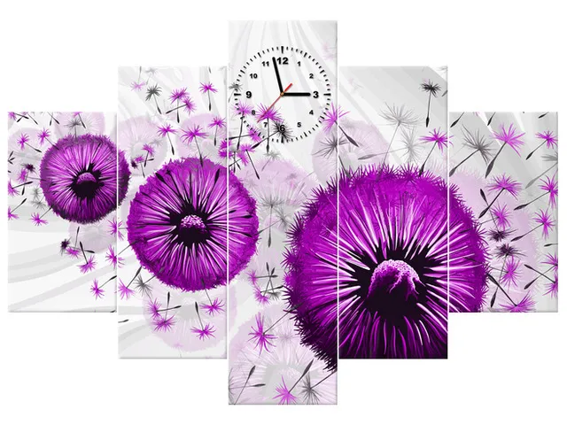 Úvod » Obrazy » Obrazy s hodinami » Fialové púpavy 4 - Obraz s hodinami