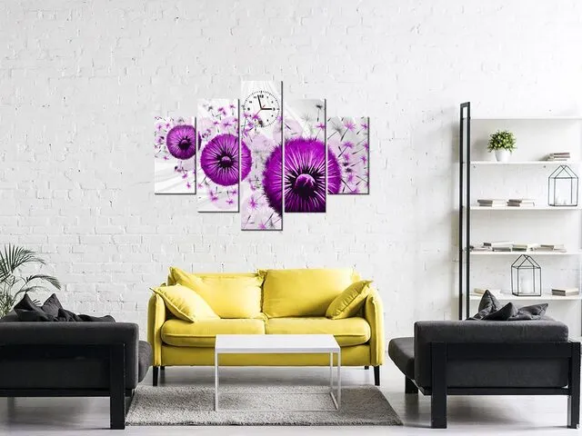 Fialové púpavy 4 - Obraz s hodinami