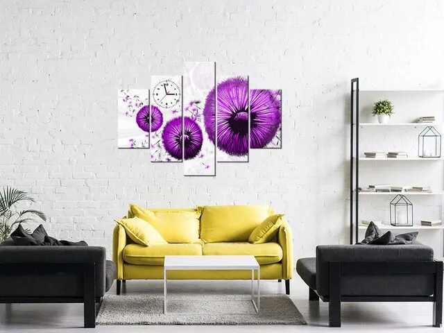 Úvod » Obrazy » Obrazy s hodinami » Fialové púpavy