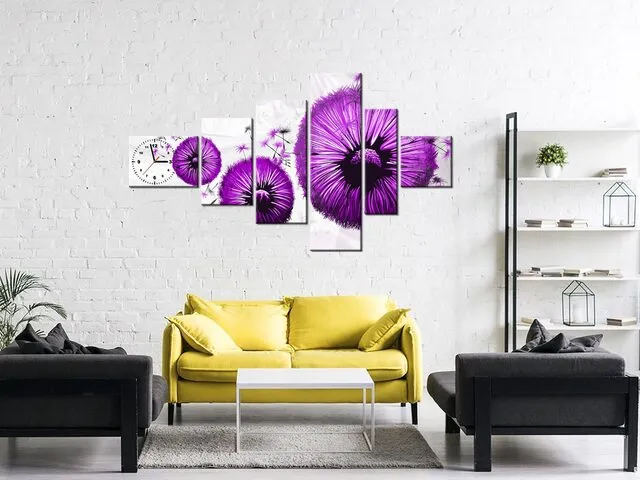 Úvod » Obrazy » Obrazy s hodinami » Fialové púpavy