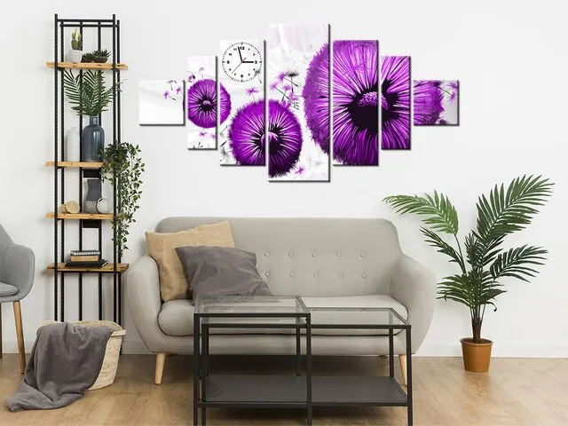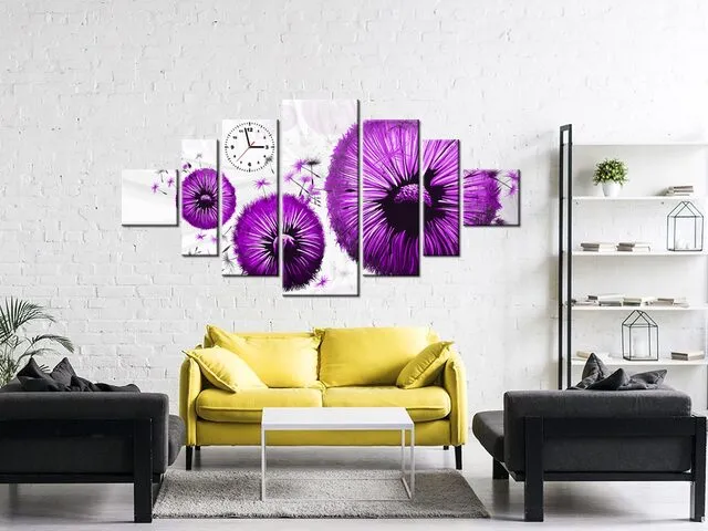 Úvod » Obrazy » Obrazy s hodinami » Fialové púpavy
