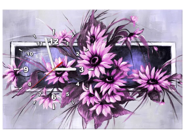 Úvod » Obrazy » Obrazy s hodinami » Fialové slnečnice Obraz s hodinami